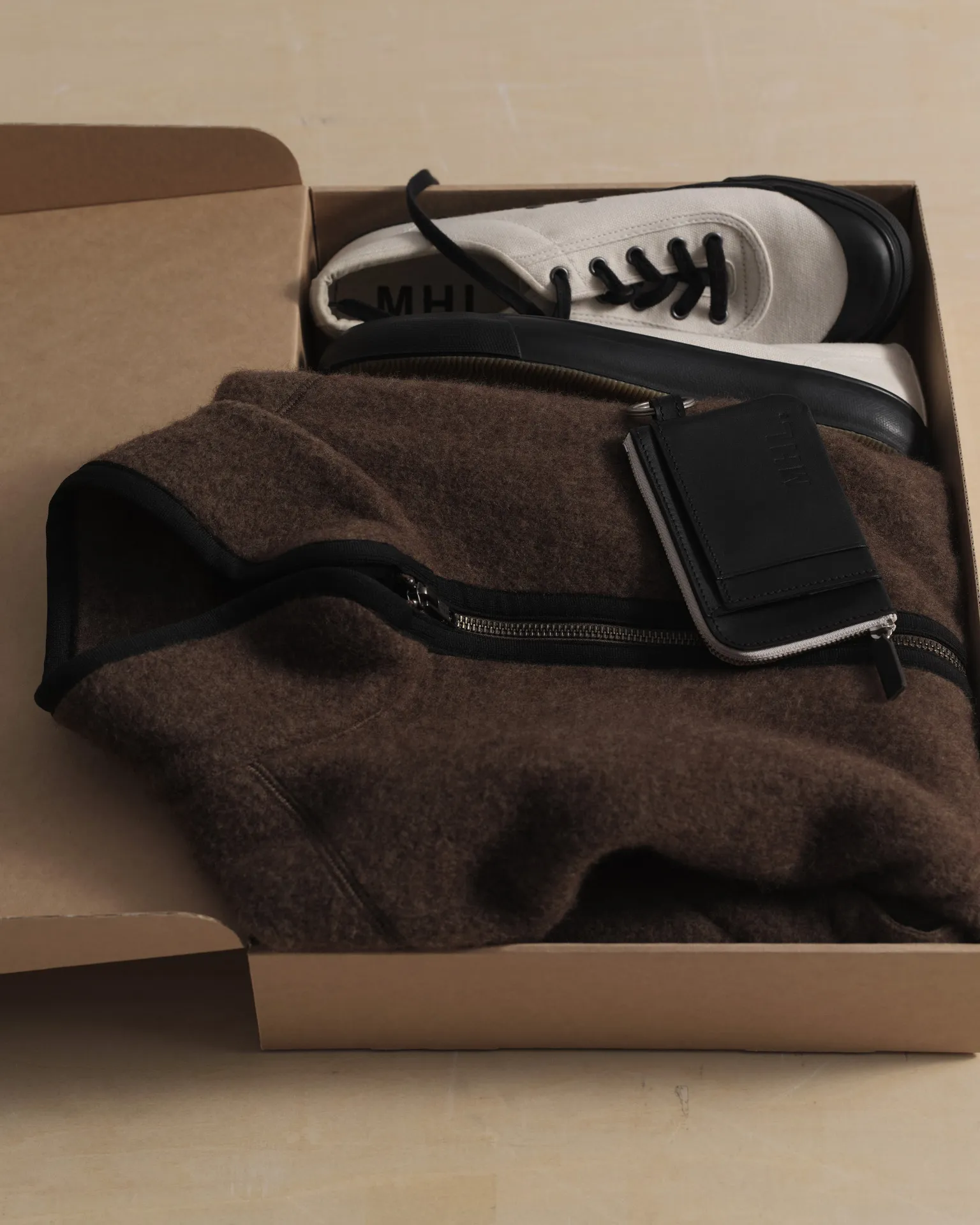 日本のバッグブランド「TEMBEA」とのコラボレーション。職人の丁寧な手仕事によるTEMBEAの機能的なデザインは、MHL.のものづくりと自然に共鳴する。 READ MORE