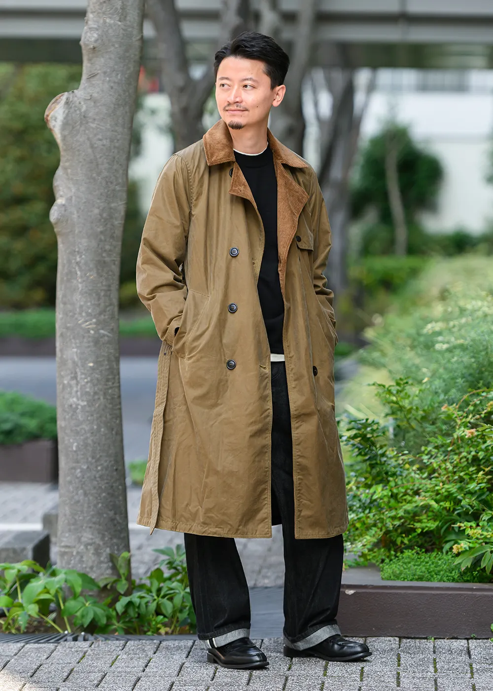 クラシカルな佇まいのトレンチコートは、Barbourの中でもポピュラーな6オンスのワックスドコットンを使用。しなやかで強度があり、ほどよい光沢感が、カジュアルな装いからドレスライクなコーディネートまで、多様なシーンにフィットします。