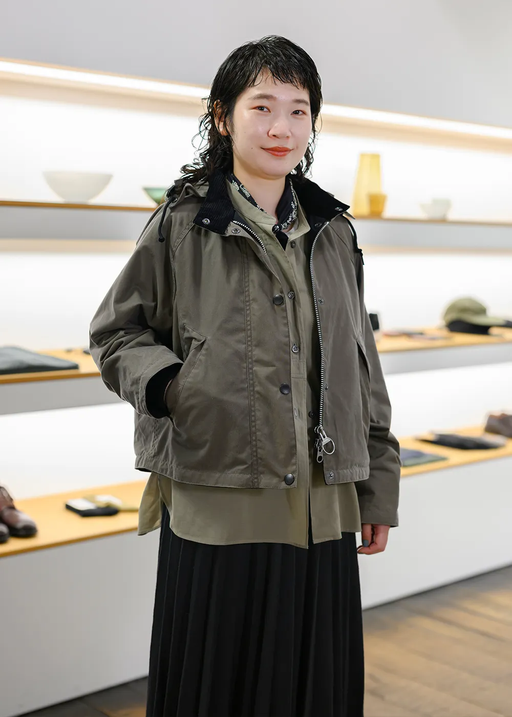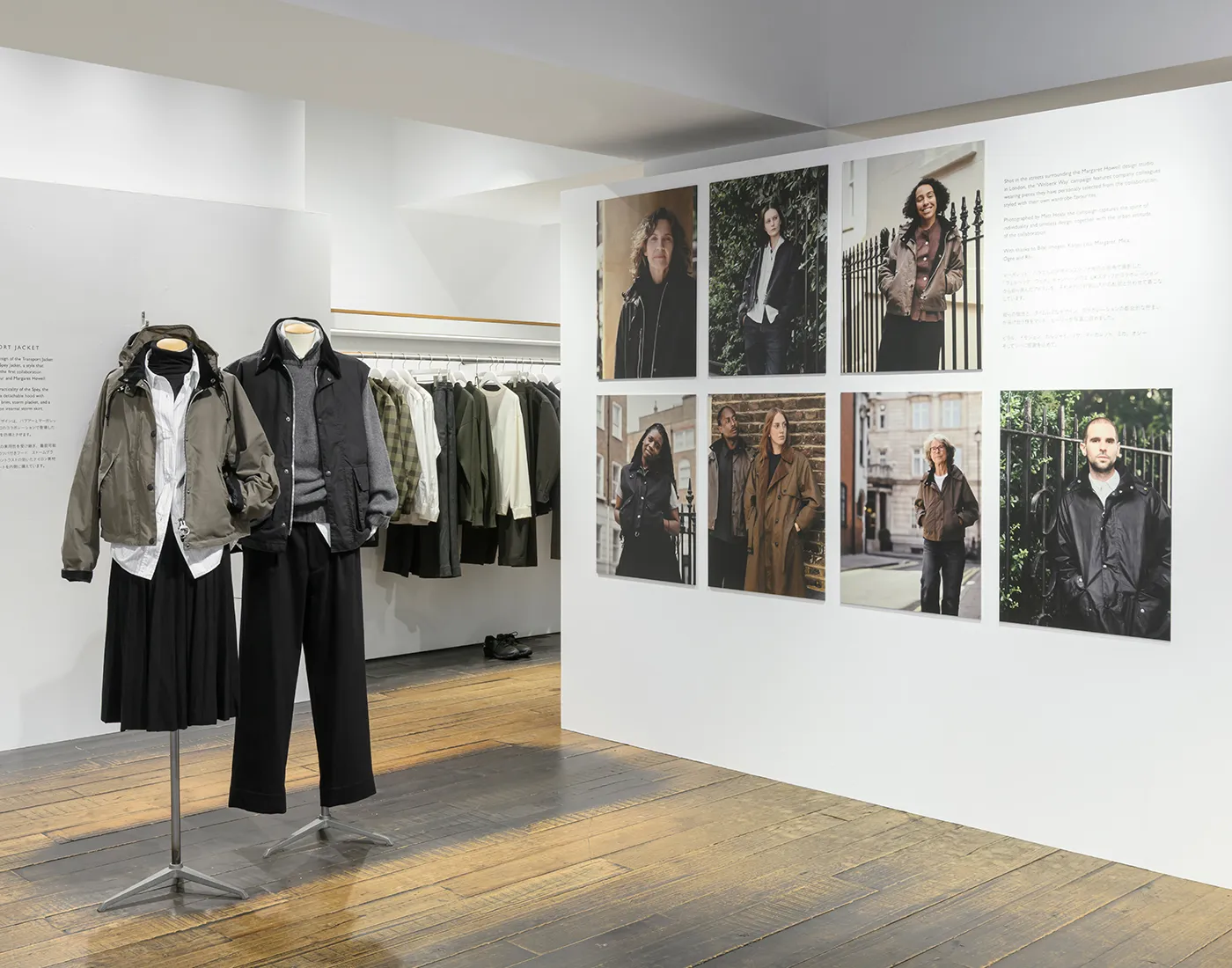 現在神南店では、Barbourとのコレクションにフィーチャーした店内演出を11月16日(日)まで行っています。コラボレーションアイテムのデザインポイントに触れた展示や、マーガレットをはじめ、UKのスタッフがお気に入りの私物とともに今回のアイテムを着こなしたそれぞれのスタイルをぜひご覧ください。