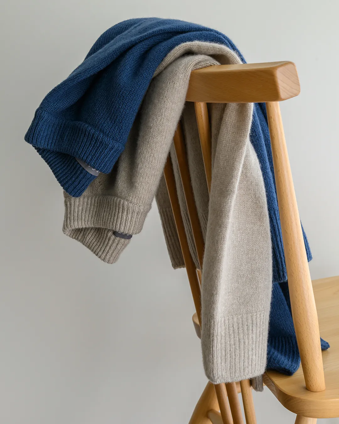 軽くて柔らかいシルクのような光沢と、保湿性と吸収性に富んだカシミヤのホームウエア。長めの着丈に設計されたフルオープンジレは、少し肌寒い時期から薄手のインナーにも羽織れるアイテム。本格的な寒さには繊細な首まわりにも上質な肌触りが嬉しいタートルネックのニットウエア。ミドルヒップまでカバーしてくれる着丈と、リラックス感のあるシルエットが心地良い。