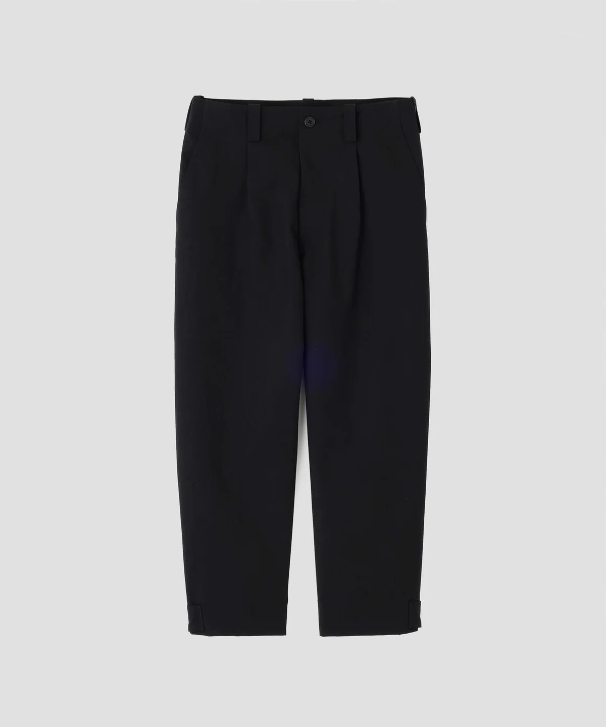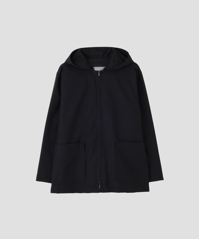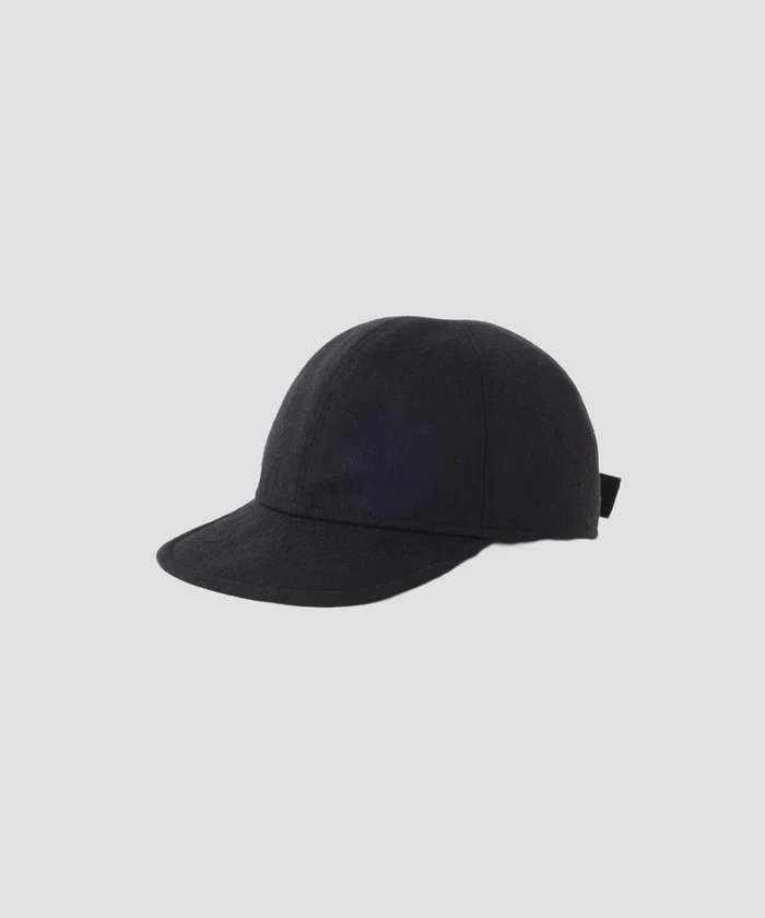 イタリアのサプライヤーでつくられた高密度でハリ感のあるウール素材を使用したジップアップフーディー。アーカイブのスタイルをアップデートし、アジャストベルトの付いたフードがデザインのポイント。フォックスブラザーズのフランネルを用いたウールキャップは、つばに柔らかい芯地を使用したソフトな被り心地。そぎ落とされたデザインとブラックカラーがマッチし、ラフなイメージのスタイリングも洗練された印象に。