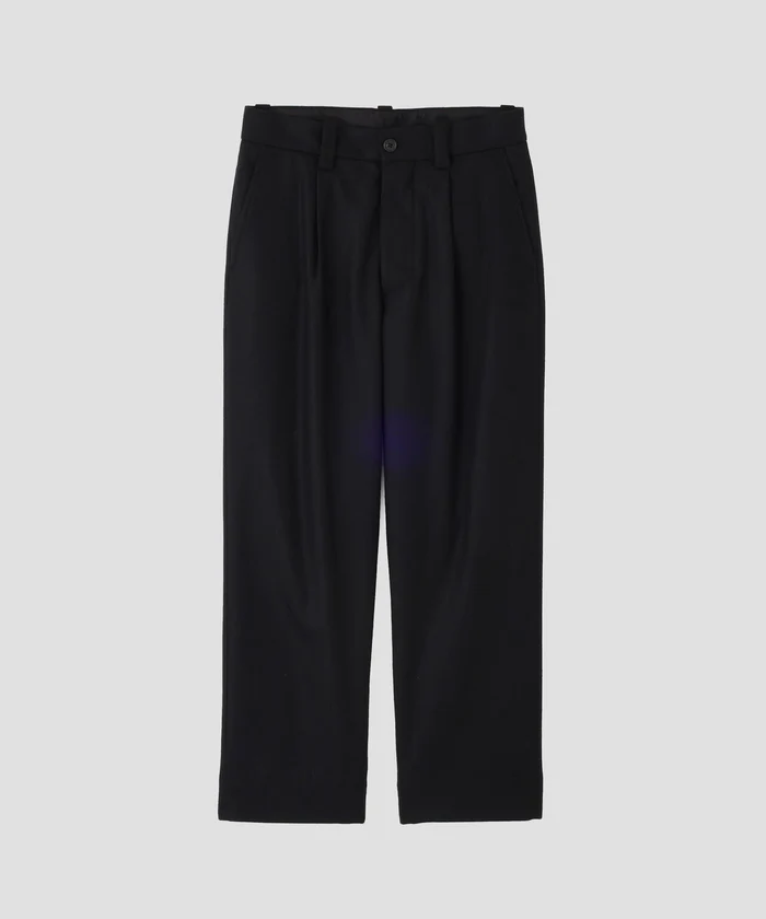フォックスブラザーズ社製のフランネルによるセットアップスタイル。原毛には羊に負担をかけない飼育から生まれたウールを使い、ソフトな手触りと高い保温性が特徴。アーカイブのデザインから着想を得たジャケットは、コンパクトな着丈とフラップのついたポケットがアクセントに。テーパードシルエットのトラウザーズは合わせを選ばず、ほどよい光沢感が着こなしを品良くまとめてくれる。