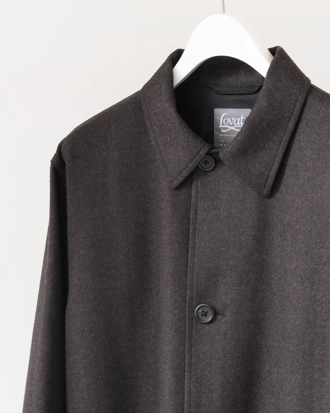 深みのあるカラーと奥行きのある繊細な風合いが際立つラヴァット社で織り上げられた上質なウールフランネル。ヴィンテージのワークウエアを思わせる程よい抜け感を添え、細部にまで実用性と耐久性への配慮が息づく仕上がりに。同素材でトラウザーズも展開。