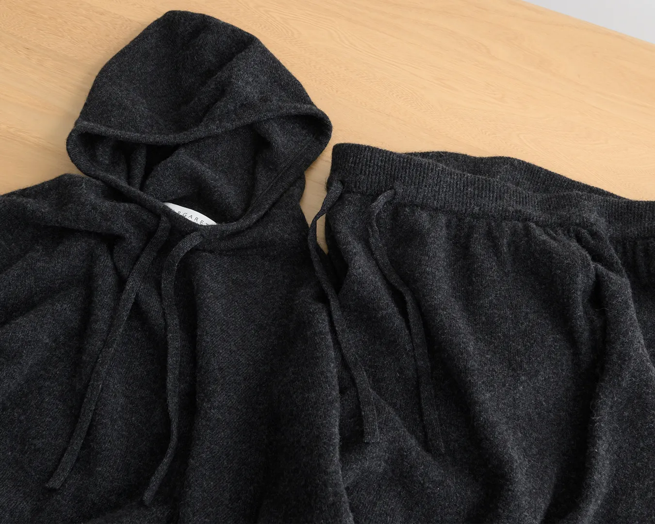 素肌に触れても優しく心地よい、ピュアカシミヤのホームウエア。纏うたびに包み込まれるような豊かなぬくもりは、軽やかで柔らかな素材本来の風合いと、縫い目のないホールガーメント製法が生み出すもの。あえてスポーティなデザインに落とし込み、上質な素材とのバランスがマーガレット・ハウエルらしさを体現したアイテム。