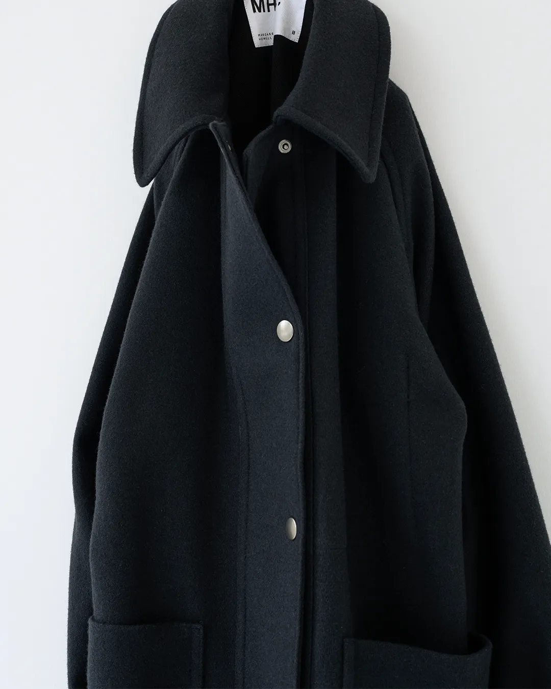 長くMHL.で愛され、より心地よい着用感にアップデートを続けてきた定番のメルトン素材。ドライな質感とカジュアルな表情を引き出しながらも適度な光沢で上品さがプラス。ウィメンズでは大きなポケットがキャッチーな印象に、メンズではヴィンテージのカーコートをベースにしたそれぞれのデザインを展開。