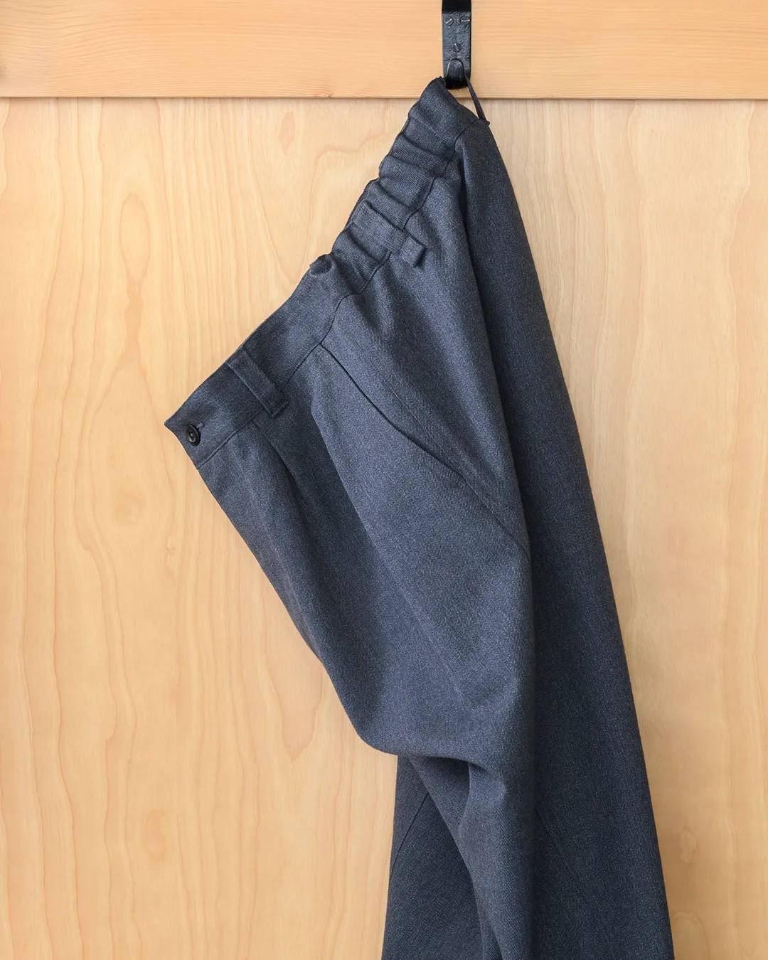 立体感のある綾目と、奥行きのある表情がシンプルなカラーリングと相性の良い素材。ウエストのゴムギャザーのディテールで着用感にリラックス感を持たせながら、フロントはタック使いでカジュアルな中に上品さを感じる仕上がり。