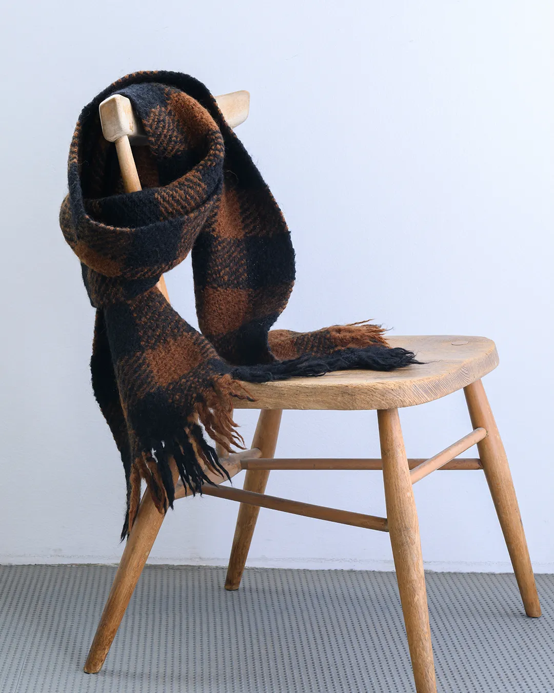 大きなブロックチェックと、ざっくりとした風合いがブランドらしいフィーリング。スラブ感のあるウールを贅沢に用いることで生まれるボリュームと、見た目にも感じられる温かみがシンプルなスタイリングにもアクセントを添える。