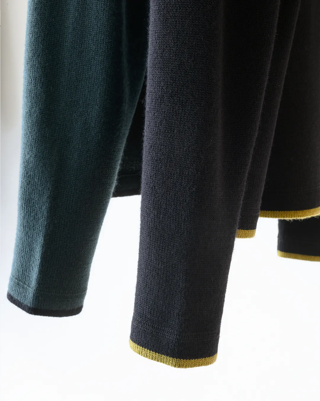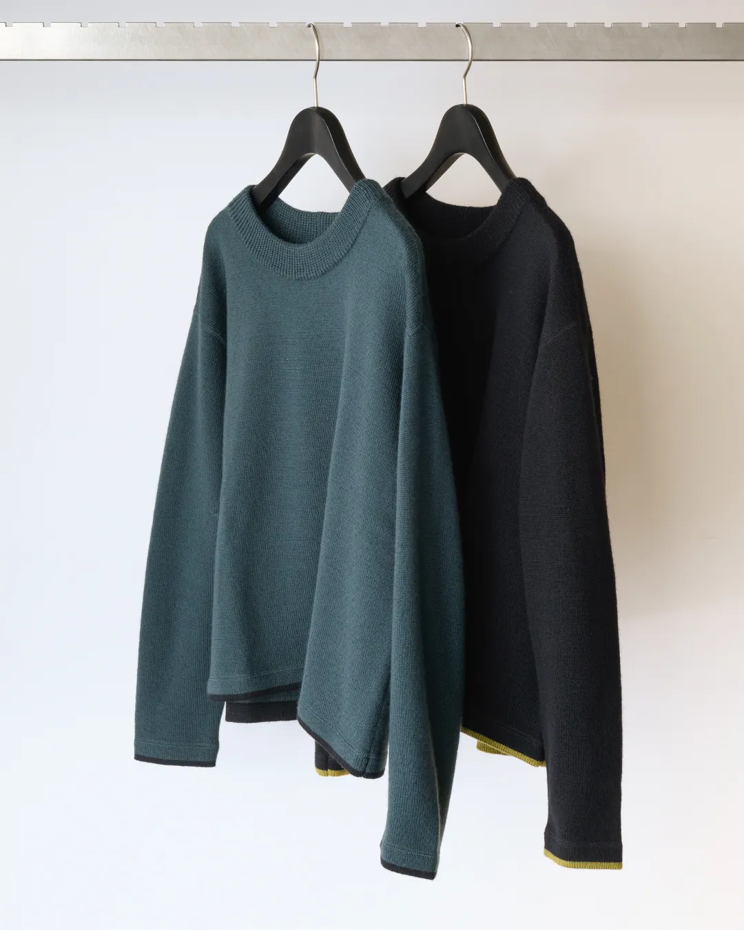 自然な膨らみと温かさを持ちながら、Tシャツのようにラフに着用できる軽やかな素材。ウィメンズとメンズで考え抜かれたそれぞれのネックラインと、裾と袖口に配色された遊び心のあるティッピングのデザインがさり気ない独自のキャラクターを表現。