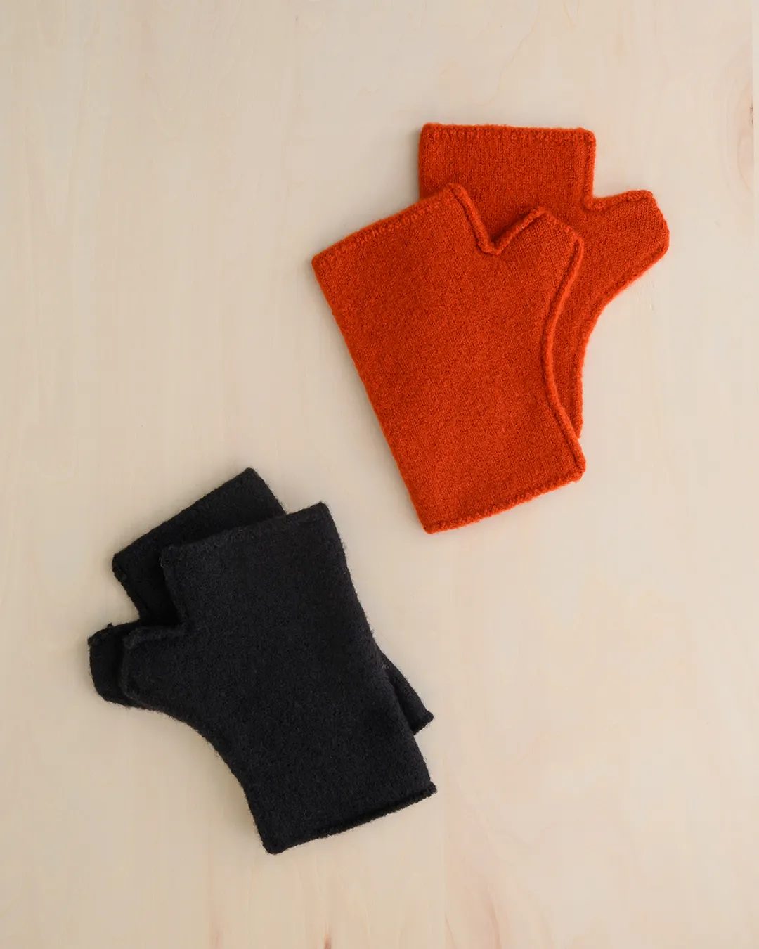 愛らしいその佇まいとカラーリングがブランドの定番となっているフィンガーレスグローブ。1枚のパネルを折り合わせたシンプルなデザインながら、弾力のあるニュージーランドウールを用いて程よい厚みやドライなタッチなど、風合いにこだわったアイテム。