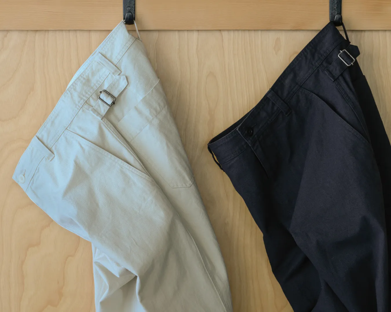こだわり抜いた染色方法でMHL.らしいカラーリングとタフさを持ったトラウザーズ。ワークウエアのディテールと、シンプルなデザインがほどよく調和したバランス。程よいフィット感と時代を選ばないシルエットがデイリーに寄り添う。