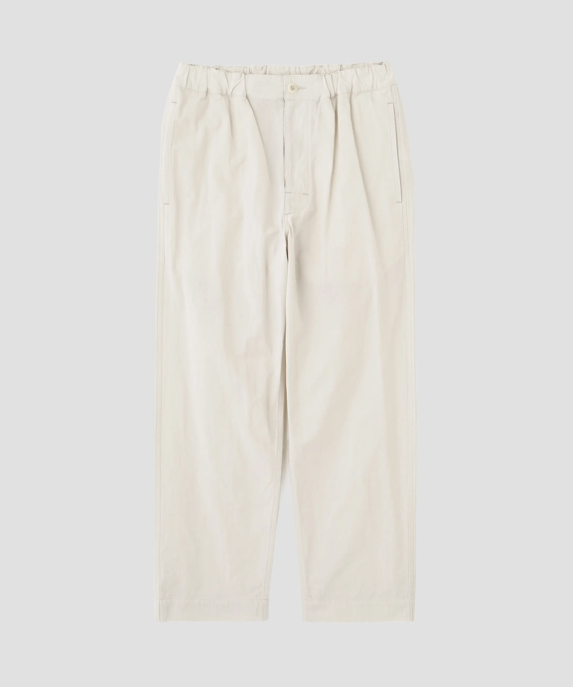 ブランドのものづくりに共感するファクトリーが生み出すこだわりの素材と、クラシカルなアイテムをモダンにアレンジしたデザインのバランス。スタイリングを印象付けるセーラーカラーのシャツには鮮やかなトマトの赤、デイリーなベーシックスタイルには優しいアクアのニュアンスカラーなど、デザインとカラーリングのコンビネーションも楽しめる。