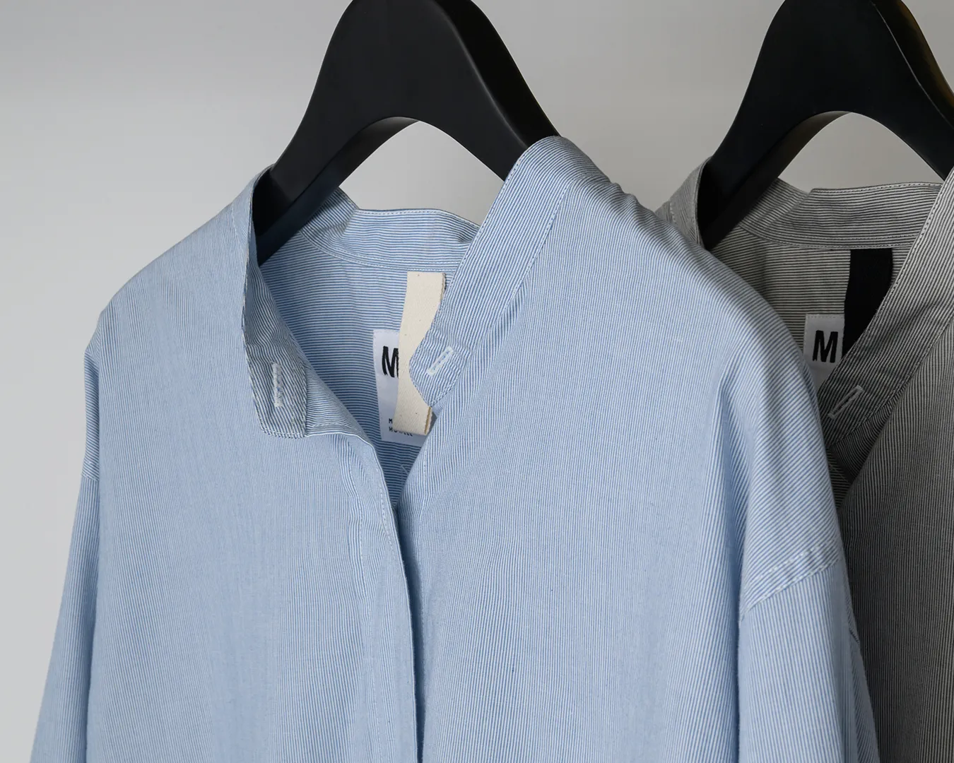 軽やかさと程よい膨らみを感じるヴィンテージのような素材感に、ヘアラインストライプをのせたシャツ。自然なボリュームと滑らかな肌触りを引き出す特殊な加工を施し、まるで上品なシャツを着込んだようなブランドらしいバランス。ウィメンズはロングシャツ、メンズはダブルパッチポケットが印象的なデザイン。ともにカラーレスのリラックス感のあるシルエット。