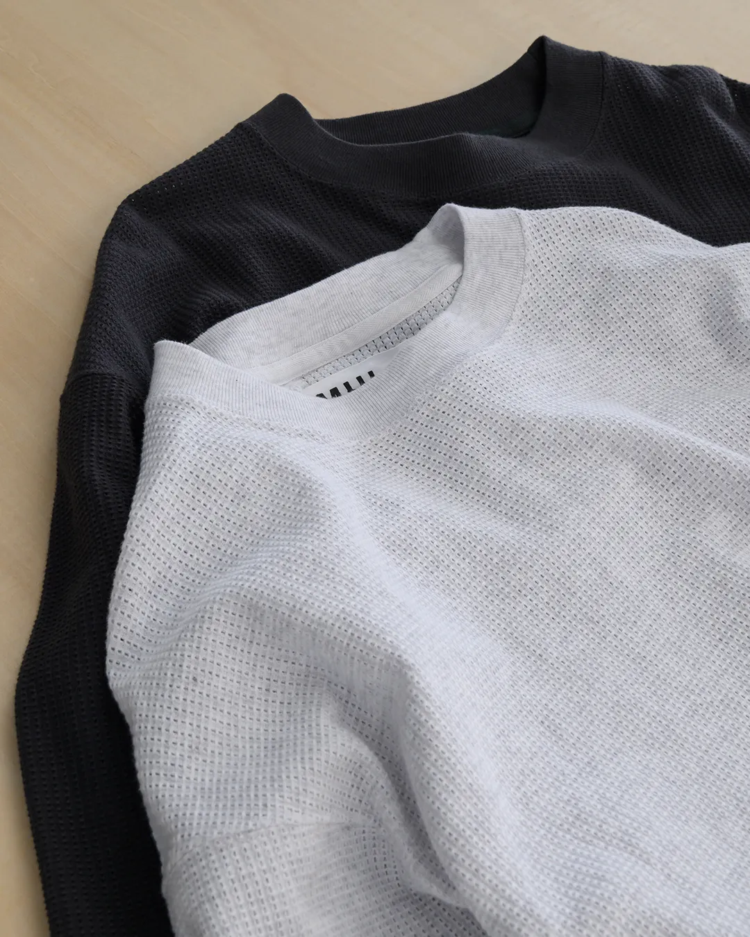 通気性と速乾性を持つメッシュ素材をやや厚手に仕立てた新鮮なTシャツ。これからの季節に心地よいさらっとした肌触りと軽さに加え、クロップドショルダーや、ボクシーシルエットのリラックスしたデザインが清涼感のある一枚。