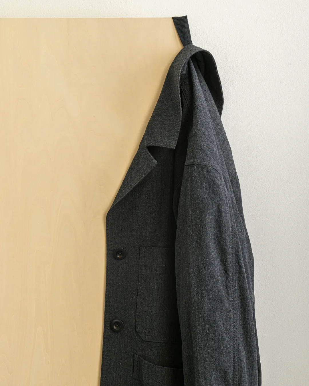 ウールとコットンを高密度に織り上げたツイル素材のジャケット。ウールの暖かみとコットンのカジュアルな風合いをあわせ持ち、仕上げを抑えることで素材本来の表情を活かした一着。同素材のスカートやトラウザーズとセットアップで着用可能。