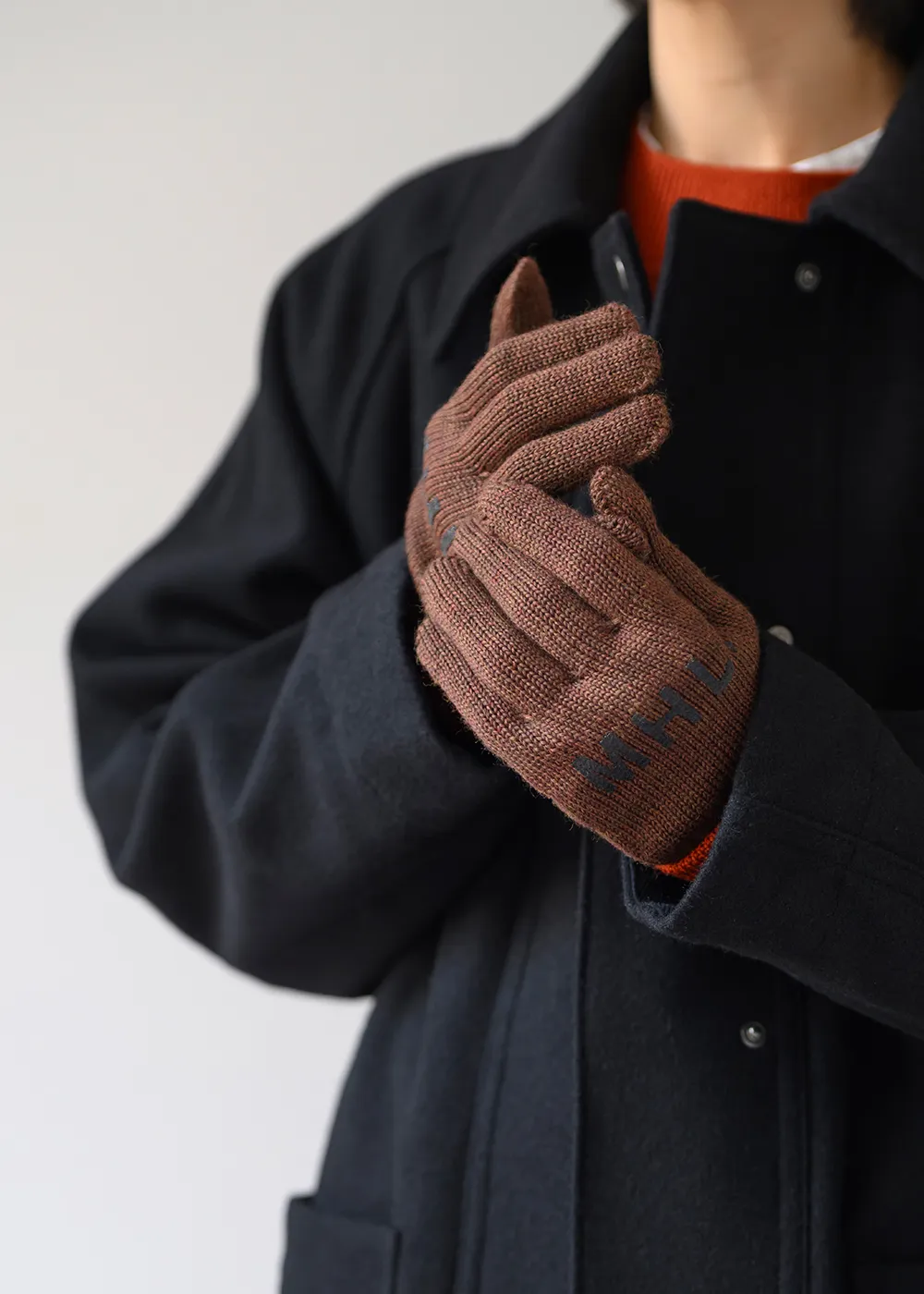 TEMBEAでは冬の定番になっているGUNTEシリーズからは、自転車に乗るシーンをイメージしたCYCLE GUNTEをベースにMHL.オリジナルカラーでラインナップ。作業用の軍手のようにMHL.のロゴをラバープリントすることで、滑り止めとしての機能はもちろん、デザイン性にもこだわりました。