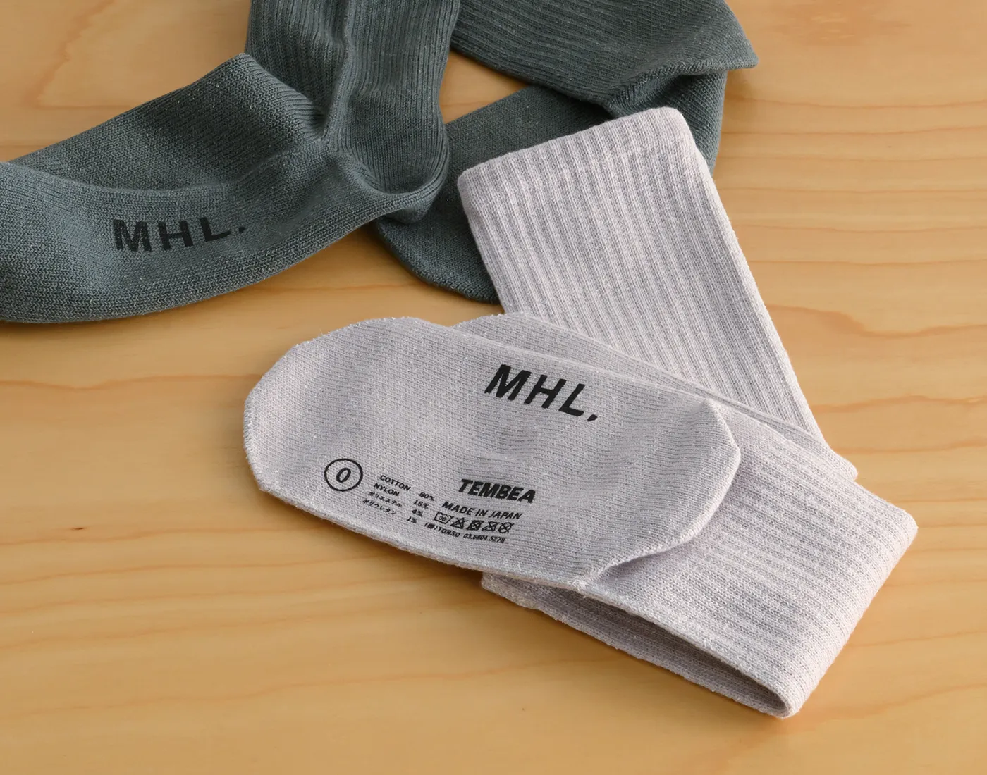 軍手工場で製造されるTEMBEAのGUNSOKUは、つま先に接(は)ぎ目のない履き心地にこだわった丈夫なつくりで、MHL.のオリジナルカラーでラインナップ。TEMBEAのダブルネームのロゴが入ったキャラクターのあるデザインは、GUNTEと合わせてこれからの季節のギフトとしてもぴったりです。