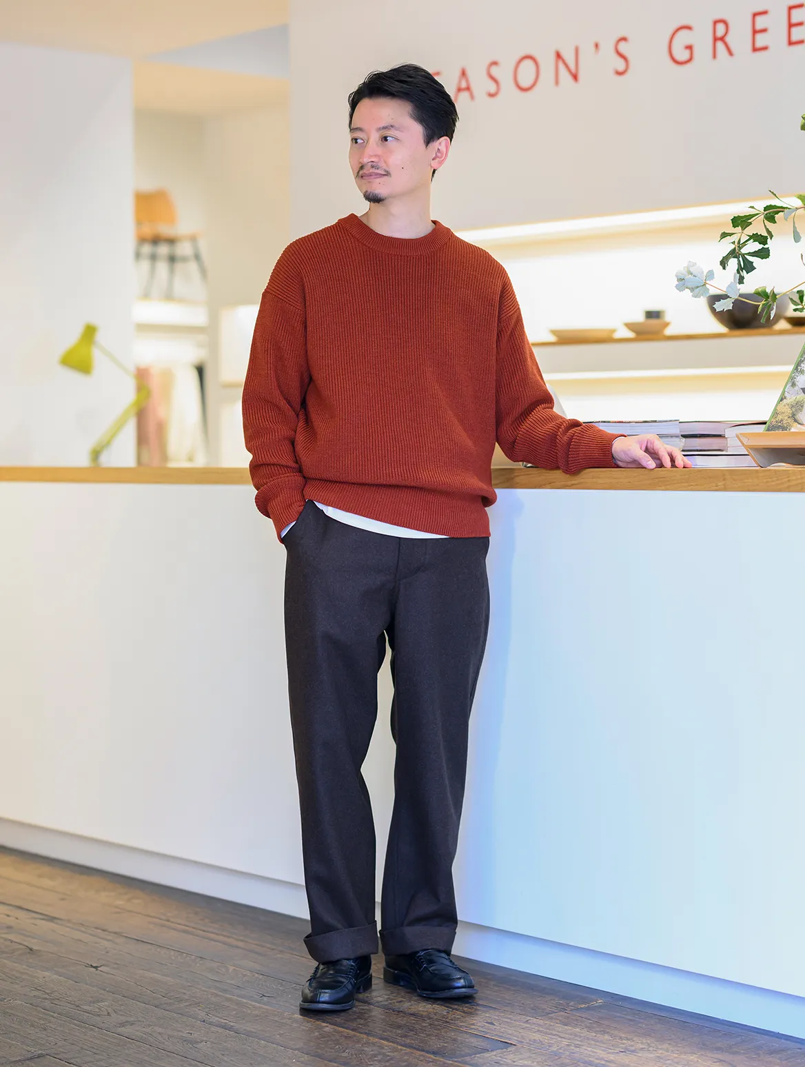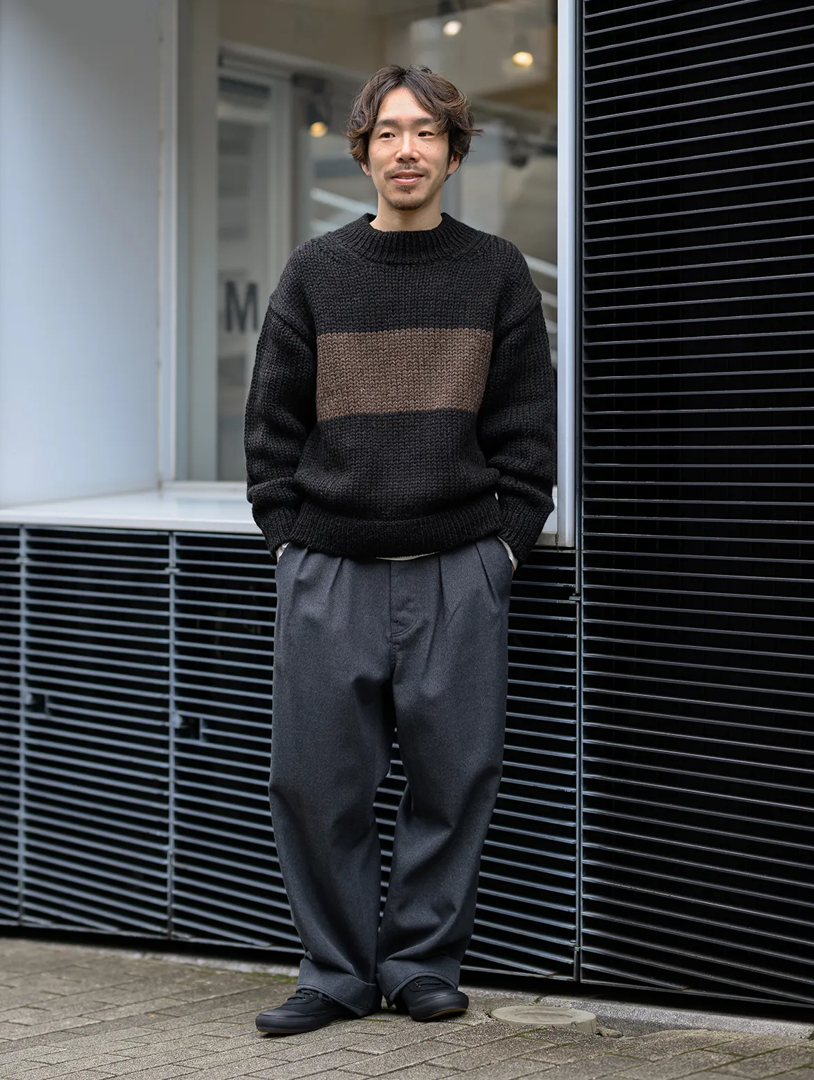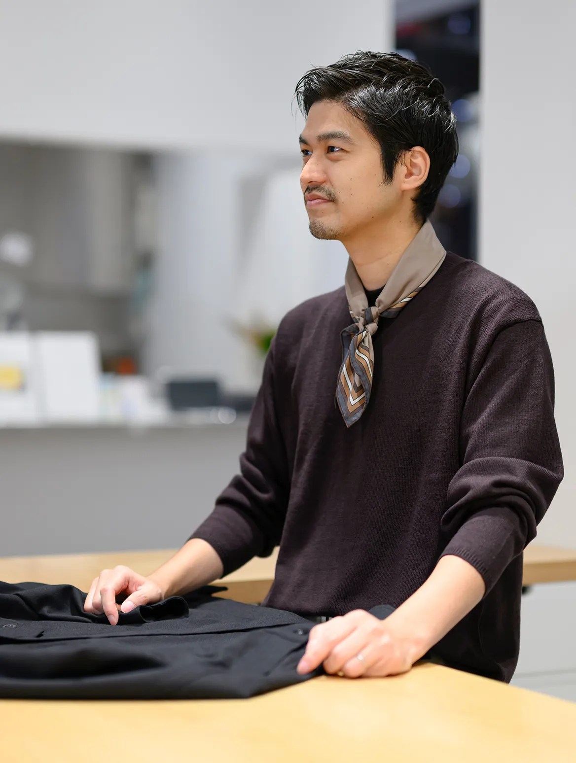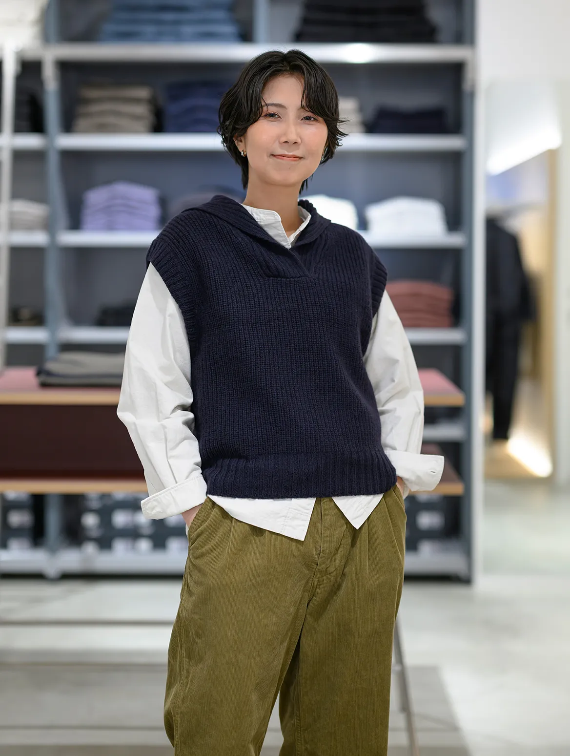 ショップスタッフが自分のスタイルで着こなしたAW25シーズンのニットコレクション。上質な糸と風合いにこだわり、シルエットやディテールにモダンな感性を加えたニットウエアは、日常に溶け込みながら着る人の個性を引き立てる。