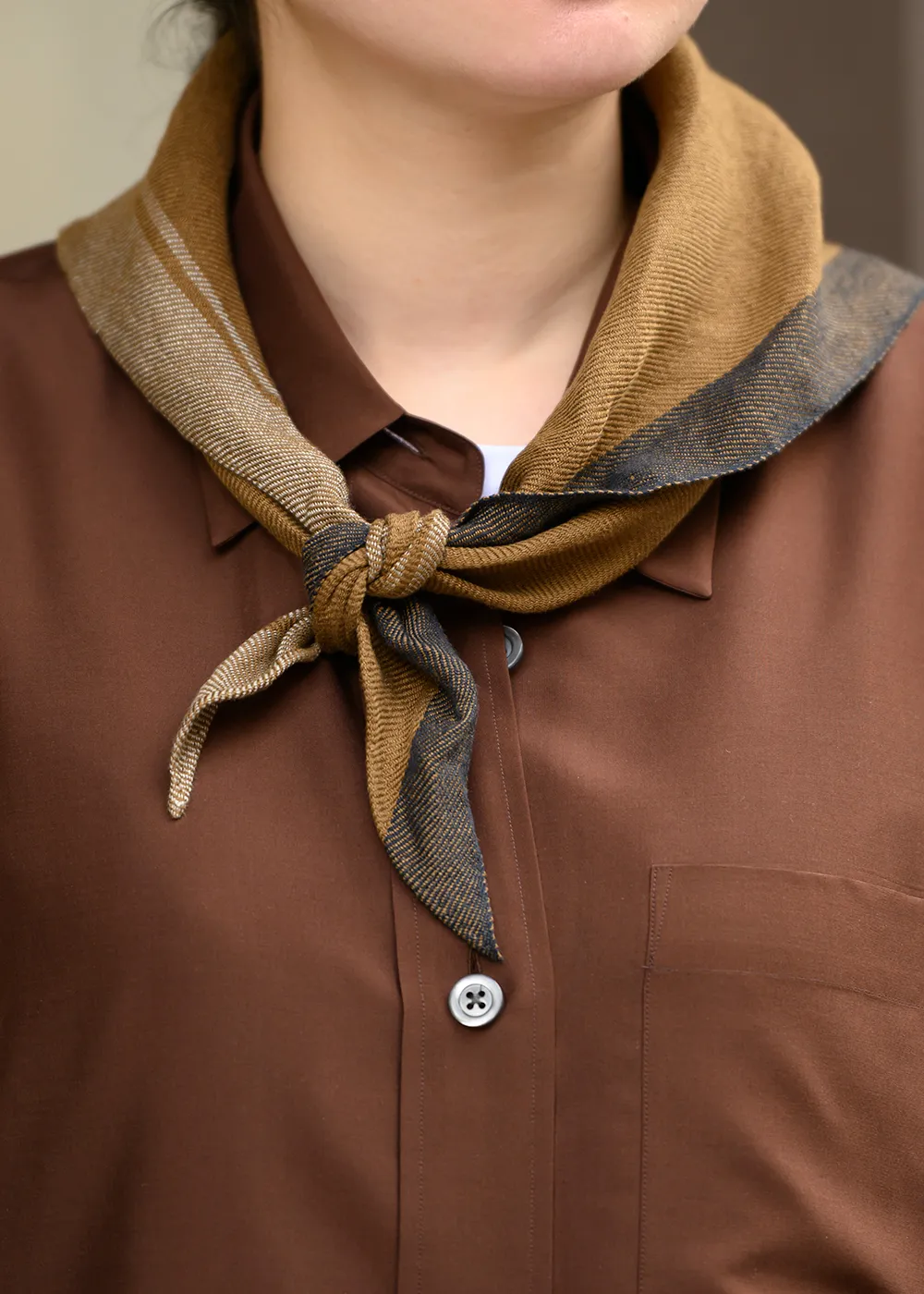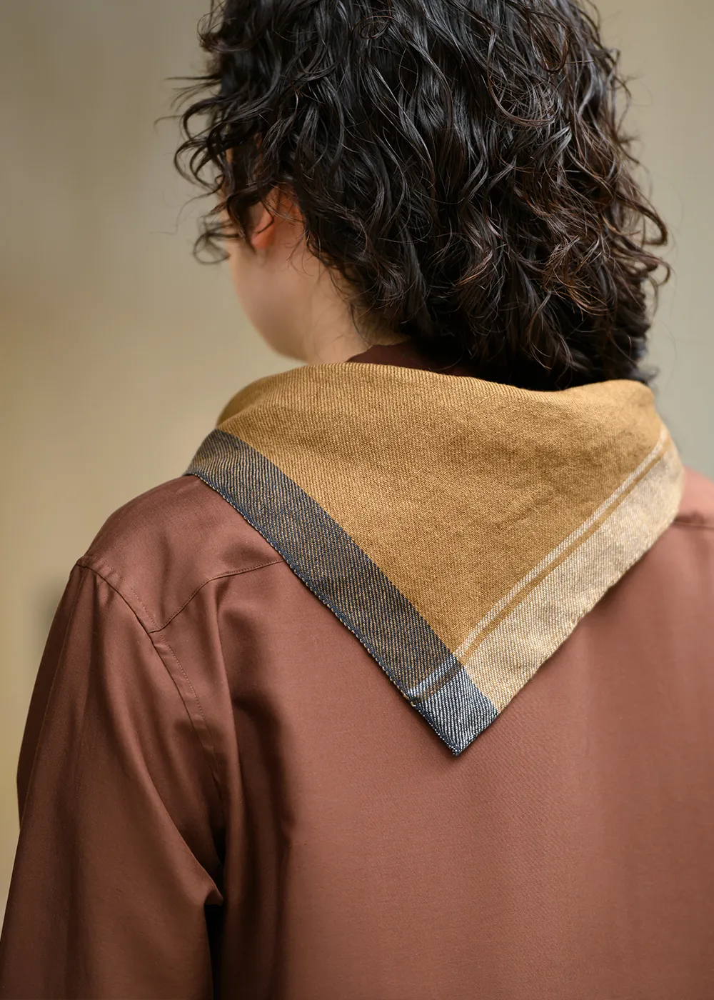 グラフィカルなプリントの三角形のスカーフは、太番手のリネン糸を使用した風合い豊かな一枚。ロンドンを拠点に活動しているテキスタイルデザイナーのMICA HIROSAWAによるもので、ひとつひとつ丁寧に手織りで仕上げています。ニュアンスのあるカラーリングは、シンプルな着こなしが増えるこれからの装いのアクセントになります。
