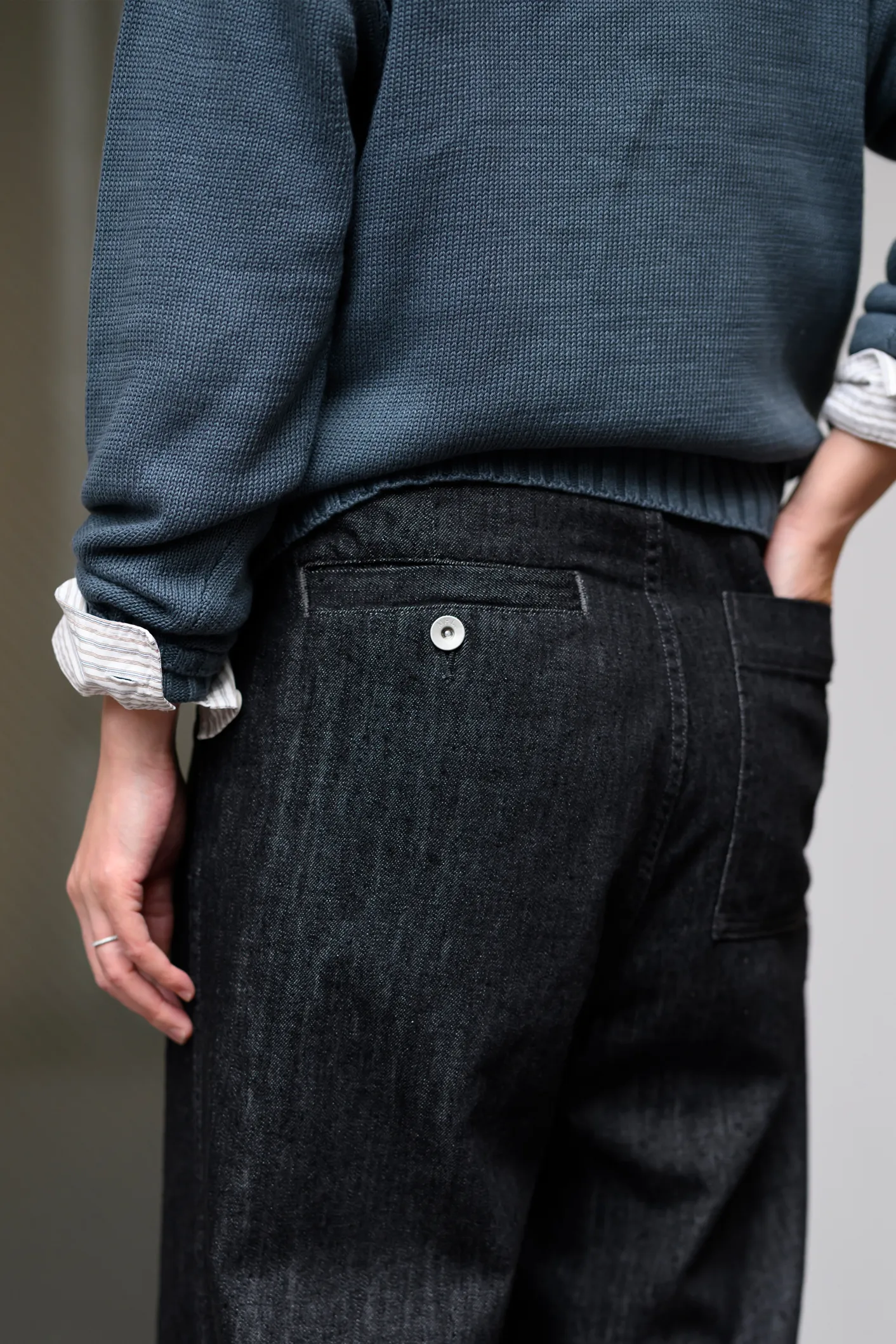 ブラックデニムを主役に、春らしさを出すためにストライプシャツを合わせた大人なコーディネート。きれいめすぎず、程よくリラックスした印象にしました。 BLACK LIGHT DENIM TROUSERS ¥35,200