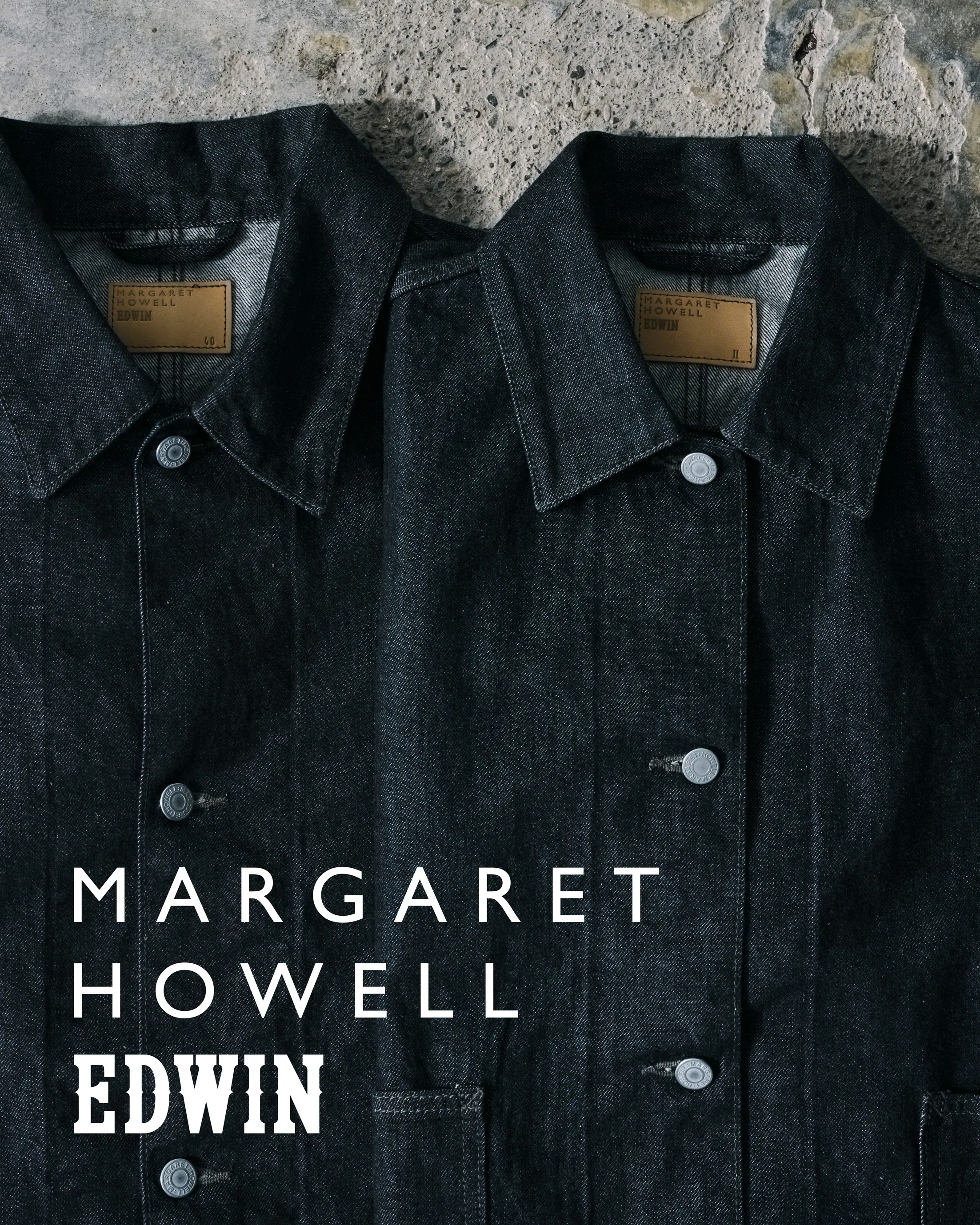 マーガレット・ハウエル自身がEDWINのジーンズを愛用していたことをきっかけに2003年にスタートしたコラボレーション。今シーズンは、EDWIN CO:RE Project(コアプロジェクト)によってリサイクルされた糸を使用したライトオンスのジャケットとトラウザーズ、新たに共同開発したチノトラウザーズが登場します。