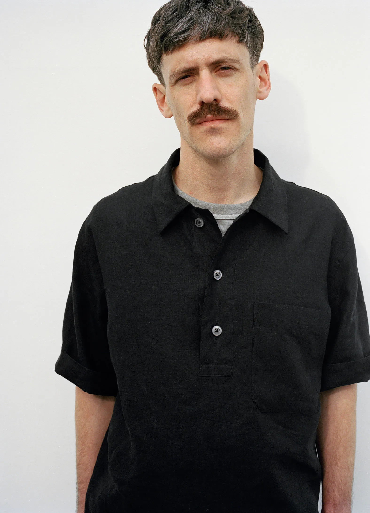 Stuart in Black Boxy Polo Shirt